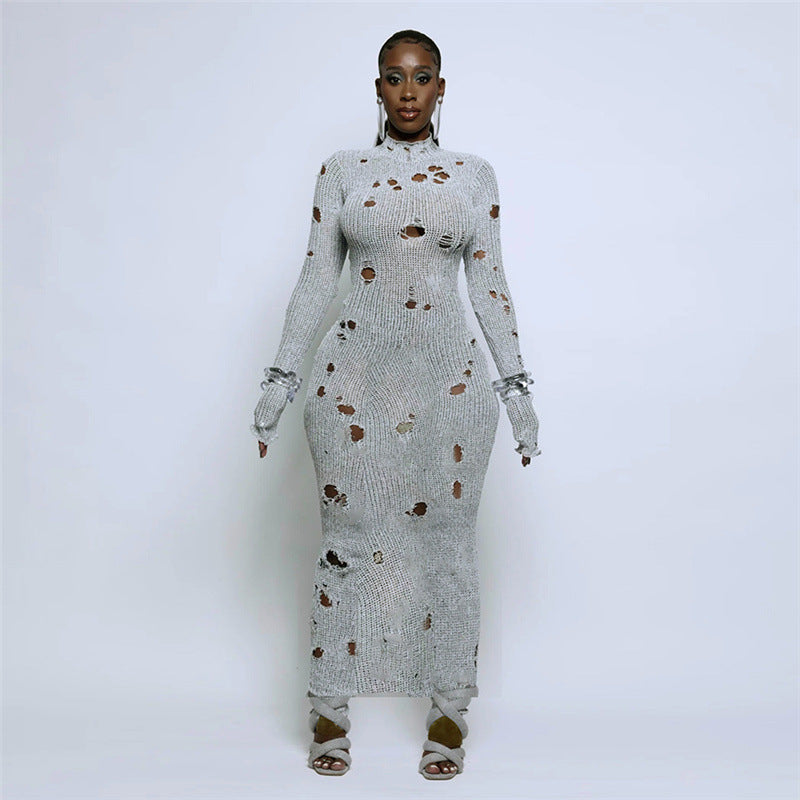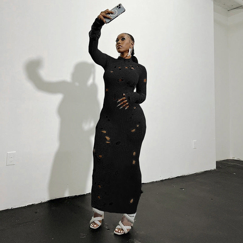 Hollow Knitted Tight-fitting Cinched Dress