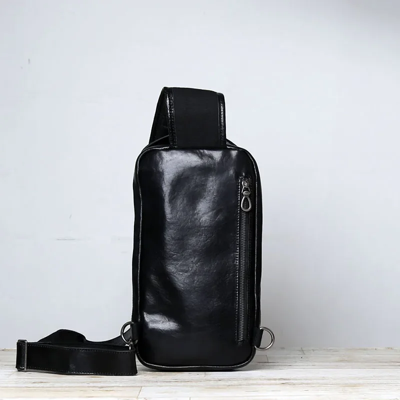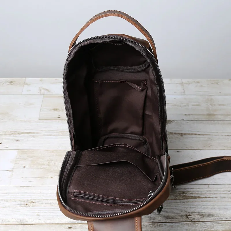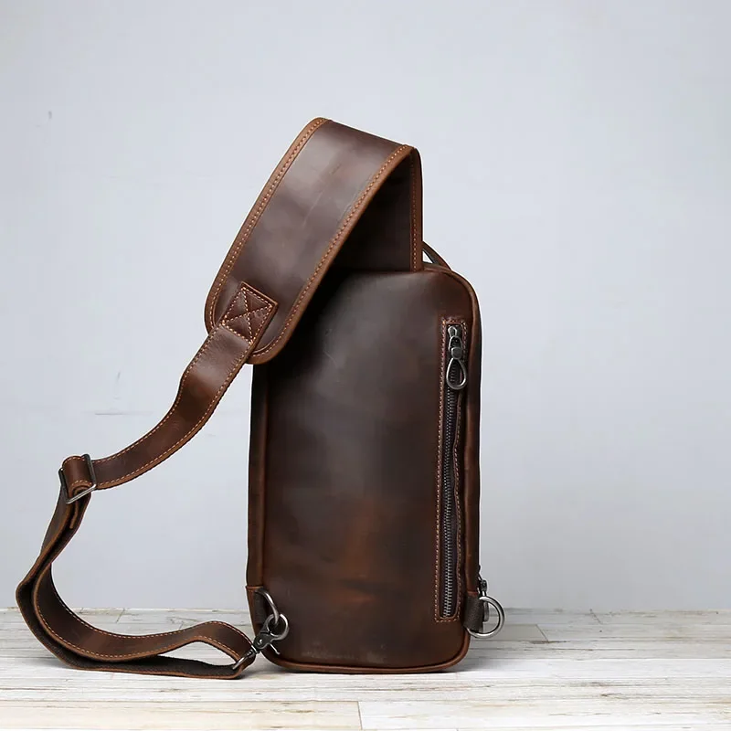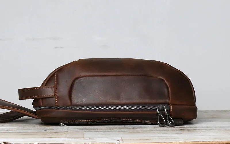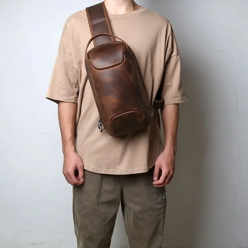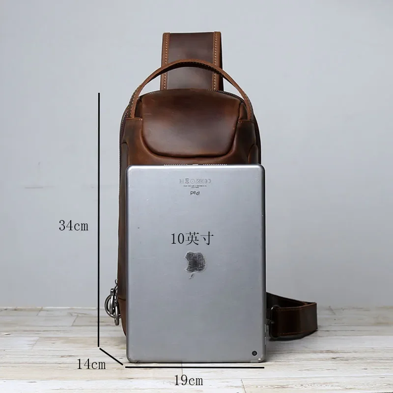 Men's Leather Retro Chest Bag Crazy Horse Leather Sports Crossbody Bag Top Layer Cowhide Large Capacity Single Shoulder Bag